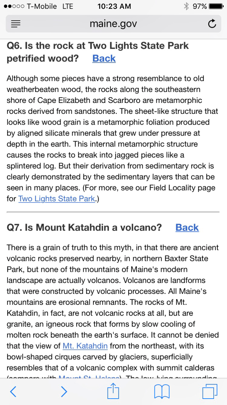 While tidepooling at the lobster roll place, we saw these amazing rocks all along the coast. So later that week, I took the time to do a little research to learn why the rocks look so much like petrified wood (they're not — see below), and sent some pics and links to Elizabeth's middle school science teacher, who loved them and wants to use them in her class. That is one thing I love about this trip — the collaborative spirit between Elizabeth's teachers back at home, and their support for us out on our adventures.