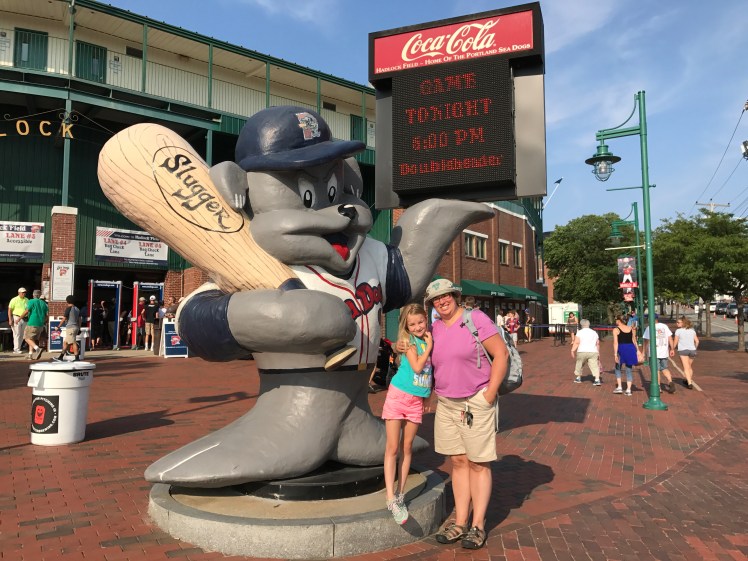 We also took the kids out to a Portland Sea Dogs game — GO SEADOGS — where Elizabeth spent her own money on a pair of knee-high Seadogs socks. Good kid!