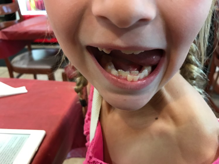 Julie just spent her Tooth Fairy money on a chocolate bar. Hopefully it won't rot her teeth! And maybe someday Sharky and Sharky Jr. will fall out as well…