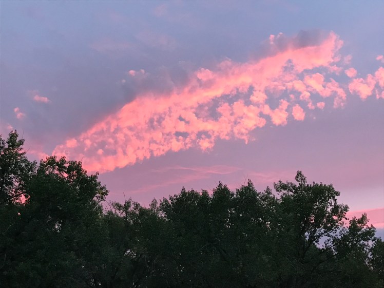 Our campsite. Remnants of the beautiful sunset. Julie’s dance moves.