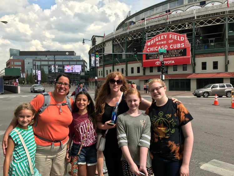 Quite a while ago now it was the morning of our second full day in Chicago. We got moving very fast reasonably quickly so that we were ready to see our family friends Candy, Parker, and Kennedy. We met them at our AirBnB and walked the few blocks to Wrigley Field (go Cubbies!) and took an excessive inordinate normal amount of pictures in front of the stadium. Then we walked to the L (eLevated train) station and rode the train to a stop near the Field Museum.