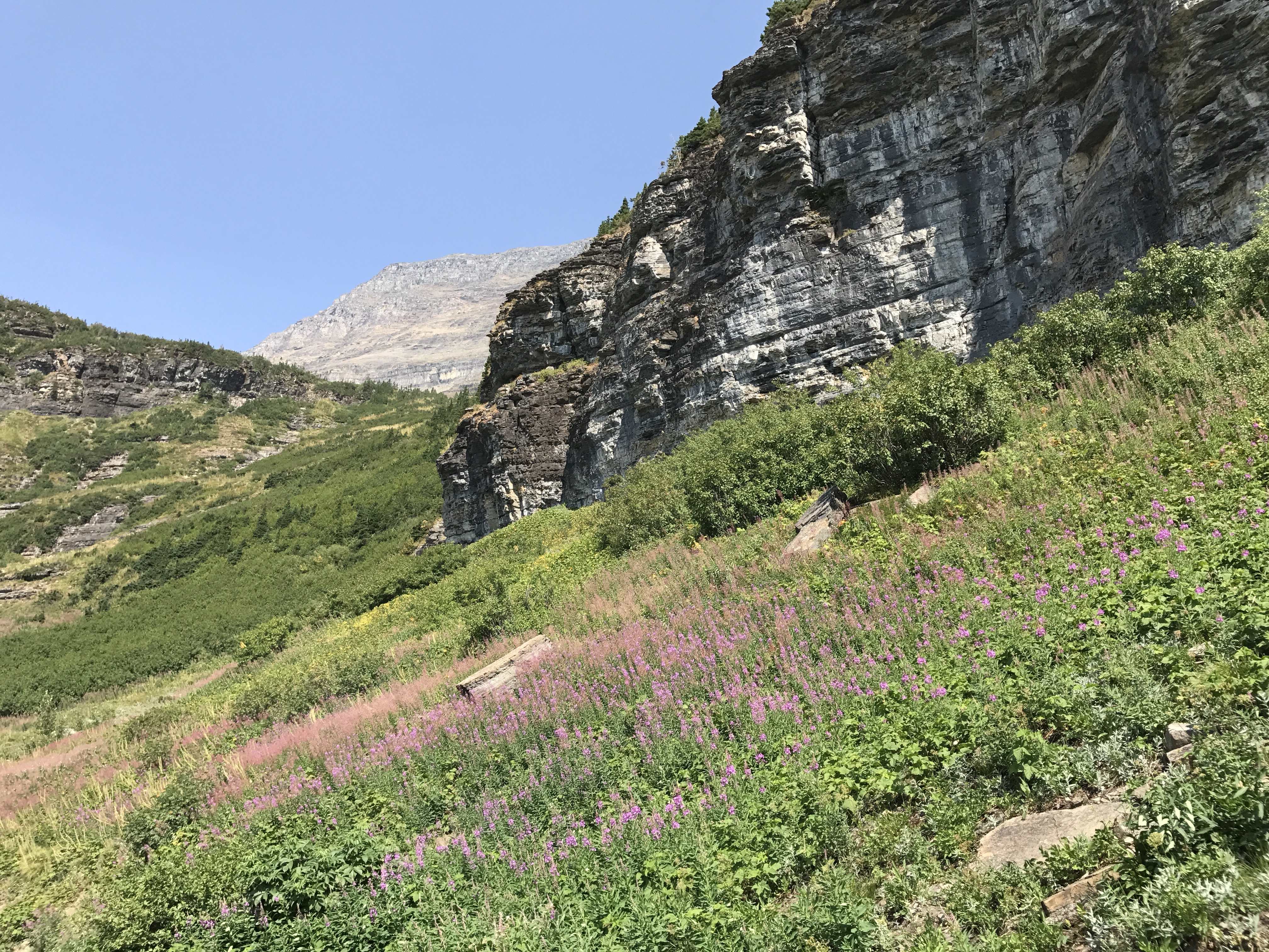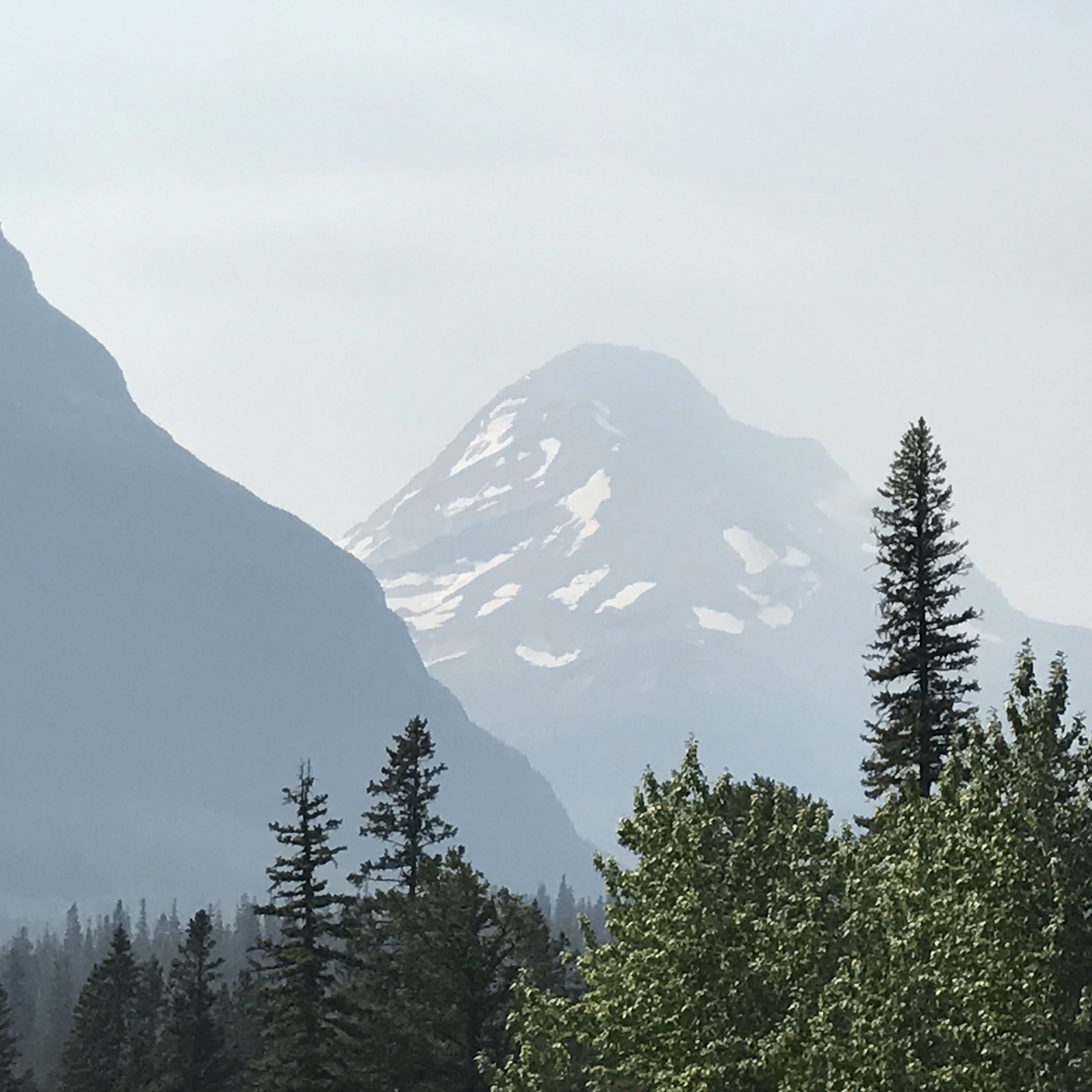 Glacier National Park on August 23, 2017, before one of its historic chalets was burnt to the ground by the wildfire that was already burning when we were there (note the smoky haze already in evidence when looking across the valley toward the glaciers):