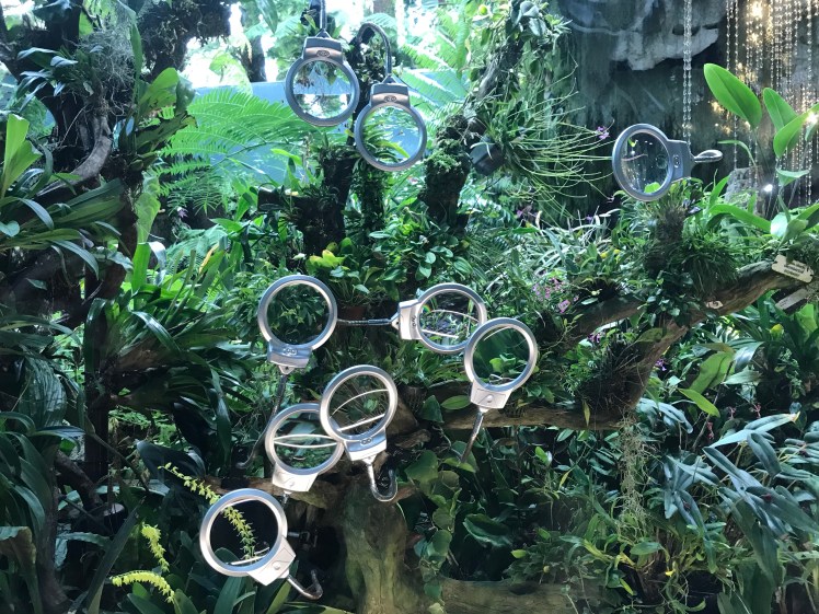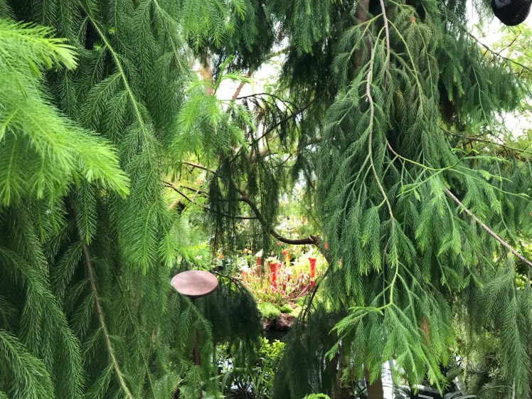 Snapshots from the Flower Dome, where we sat for an hour or more (this time dry inside) waiting for another big thunderstorm to pass.