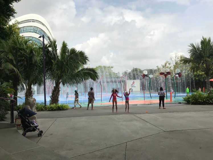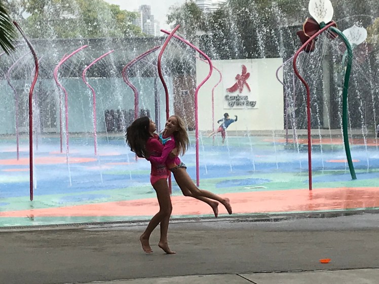 On our final day in Singapore, we had a kids’ day which was focused on the girls playing in the giant splash pad (and on the playground) in the Children’s Garden at Gardens by the Bay.