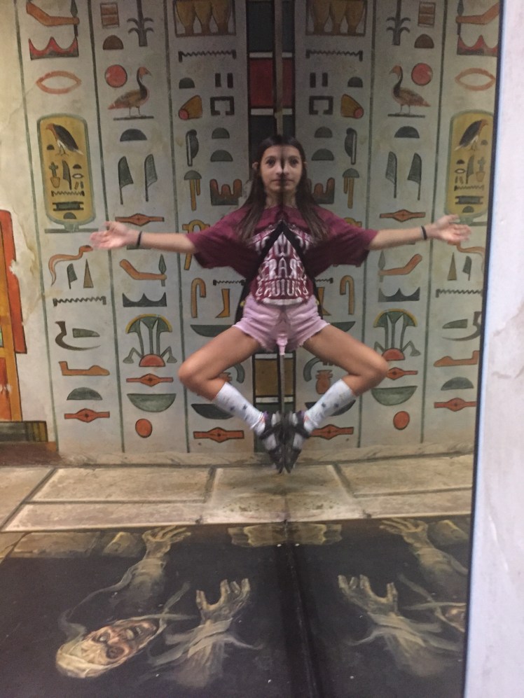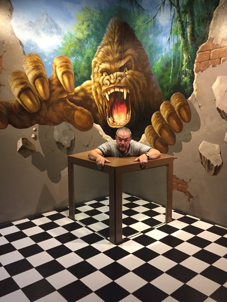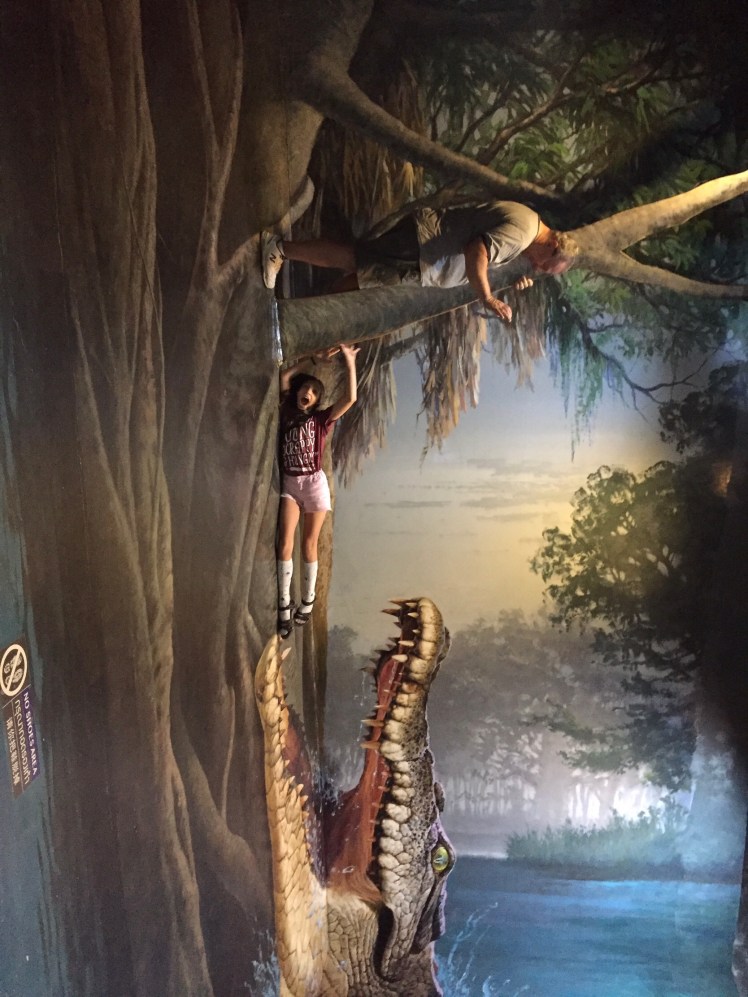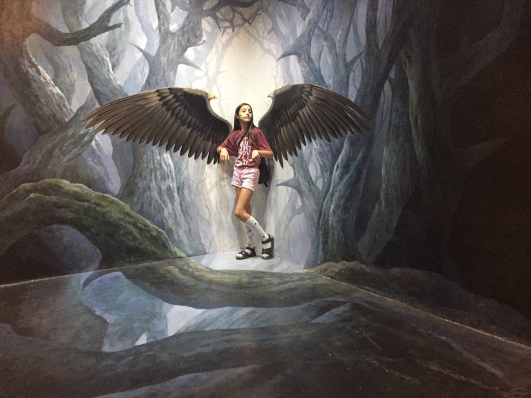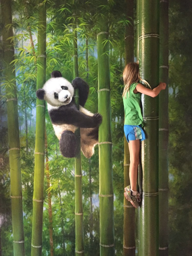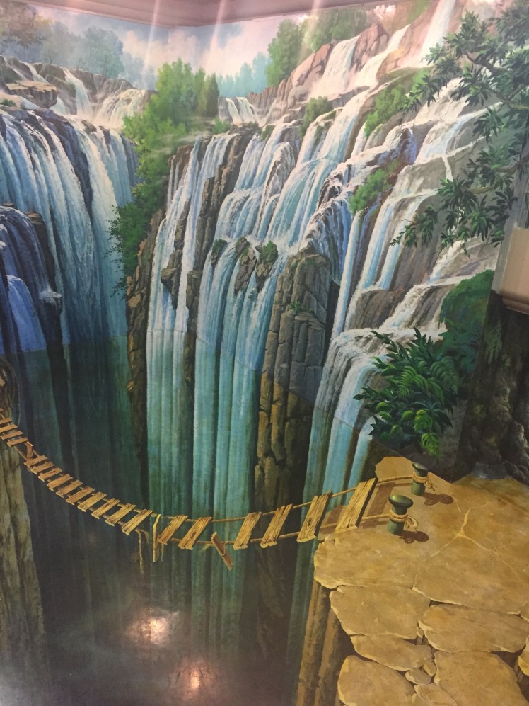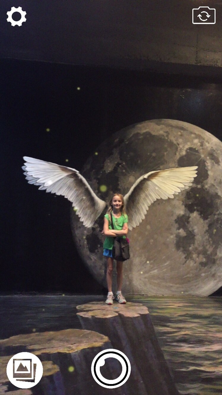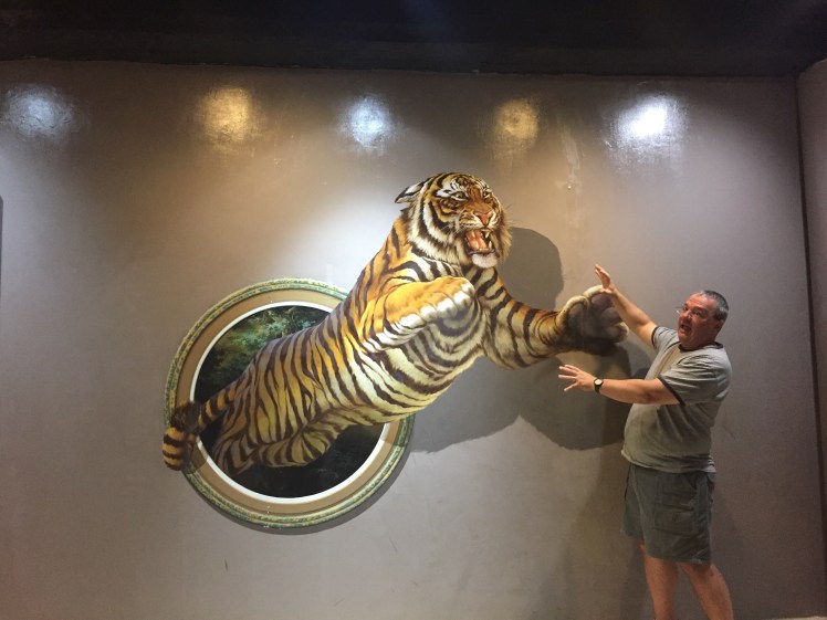 In Chiangmai we spent a day with my great aunt and great uncle and visited Art in Paradise. Art in Paradise is sort of like a museum, in the sense that it has paintings, but not beyond that. It has murals on the walls (and floor) that look three dimensional from certain angles. You can take pictures in the paintings and they look pretty cute and a little cheesy. One of the coolest things was that the museum had created an AR (augmented reality) app that went along with some of the pictures. Point the in-app camera and you get a short animation of the painting in front of you. The best way to describe this fun day is in photos, so here goes. (Some of the pictures were taken in the app so they show the buttons.)